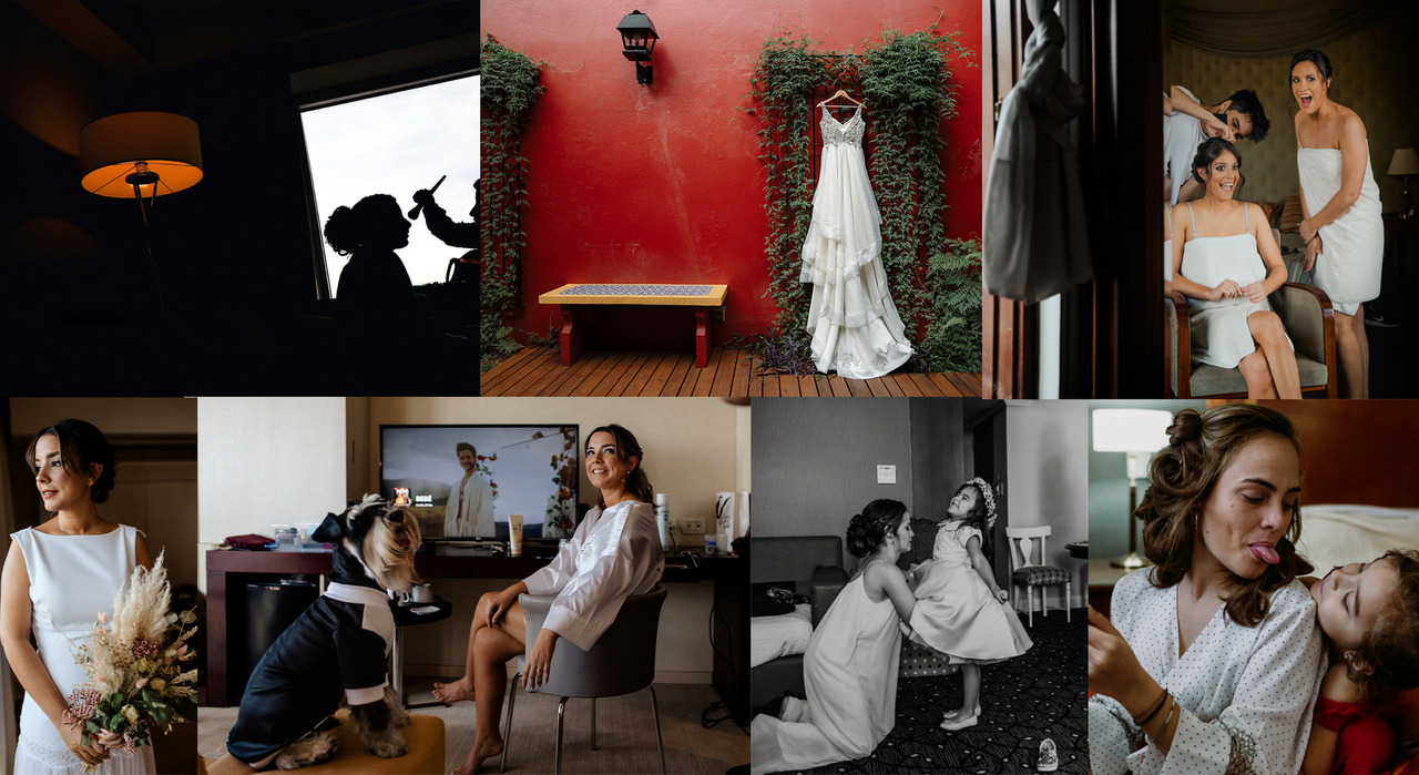 Llegado el día de la boda comenzamos con los preparativos de la novia normalmente 1 o 2 horas antes de la ceremonia, aquí es importante tener en cuenta los tiempos , que puedan coordinarse los horarios y quizá comenzar antes, pero dejar la ultima hora libre para que el fotógrafo pueda hacerle fotos a la novia de manera relajada y no a las apuradas, trabajando de esta manera lograremos una novia tranquila y espléndida en su previa 😬